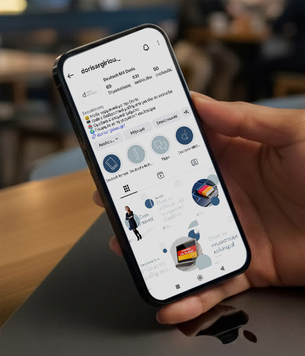 Από καθηγήτρια γερμανικών σε φροντιστήριο, η Doris εξελίχθηκε σε ανεξάρτητη επαγγελματία με ολοκληρωμένη εταιρική ταυτότητα. Ενισχύσαμε την επαγγελματική της παρουσία, δημιουργώντας: