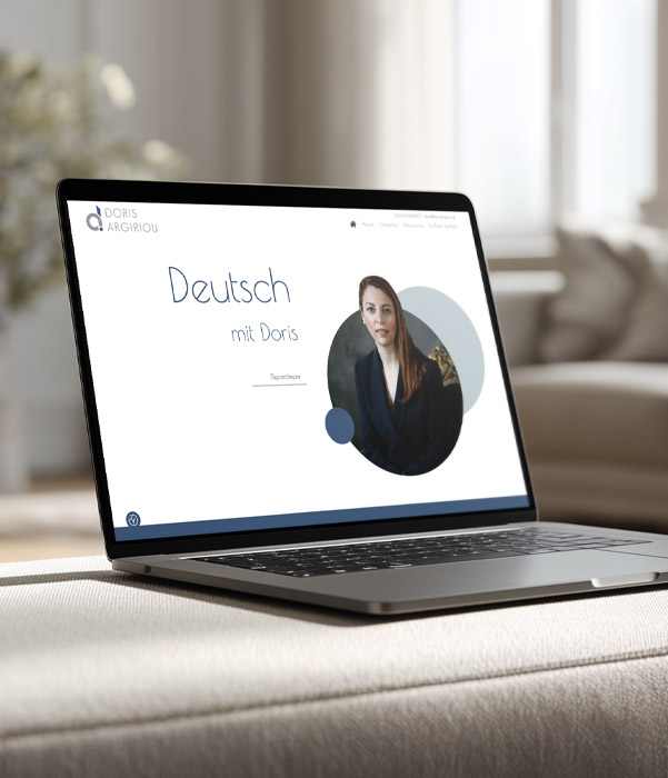 Η Doris Argiriou δίδασκε γερμανικά σε φροντιστήρια της Θεσσαλονίκης και παράλληλα προσέφερε ιδιαίτερα μαθήματα. Κάποια στιγμή αποφάσισε να κάνει το επόμενο βήμα: να δημιουργήσει τη δική της, ανεξάρτητη online επιχείρηση διδασκαλίας γερμανικών για ενήλικες και παιδιά. Η Fourizon ανέλαβε να διαμορφώσει πλήρως την επαγγελματική της εικόνα και την υποστηρίξει στη μετάβαση από τον ρόλο της «καθηγήτριας» σε μια σύγχρονη, πλήρως δομημένη ψηφιακή εκπαιδευτική επιχείρηση.