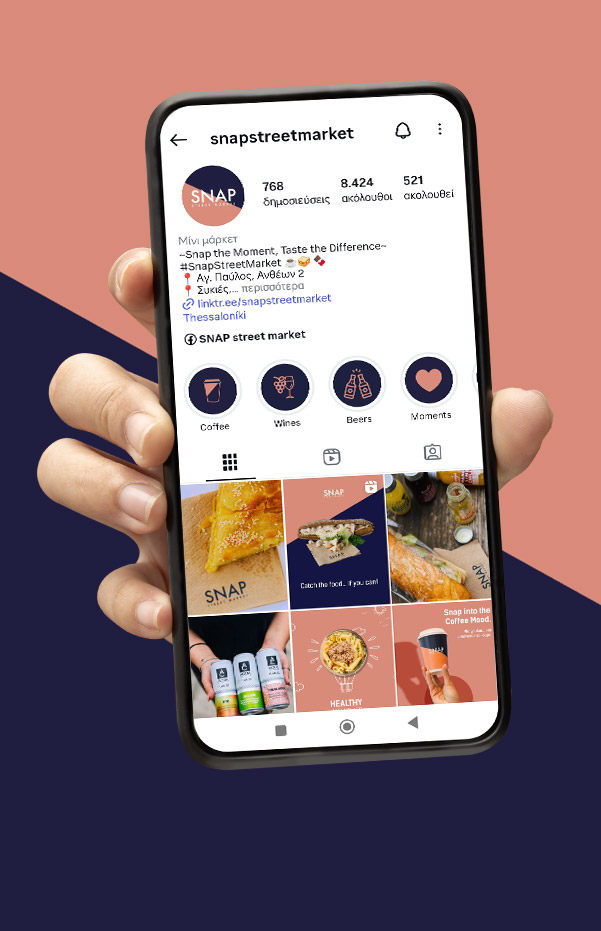 Η Fourizon προσέγγισε το έργο στρατηγικά, μετατρέποντας την ψηφιακή παρουσία του Snap Street Market σε δυναμικό extension του καταστήματος. Στόχος μας ήταν να δημιουργήσουμε μια συνεκτική, αναγνωρίσιμη και ελκυστική online εικόνα που φέρνει το brand πιο κοντά στους πελάτες, ενισχύει την προβολή και προάγει την αλληλεπίδραση.